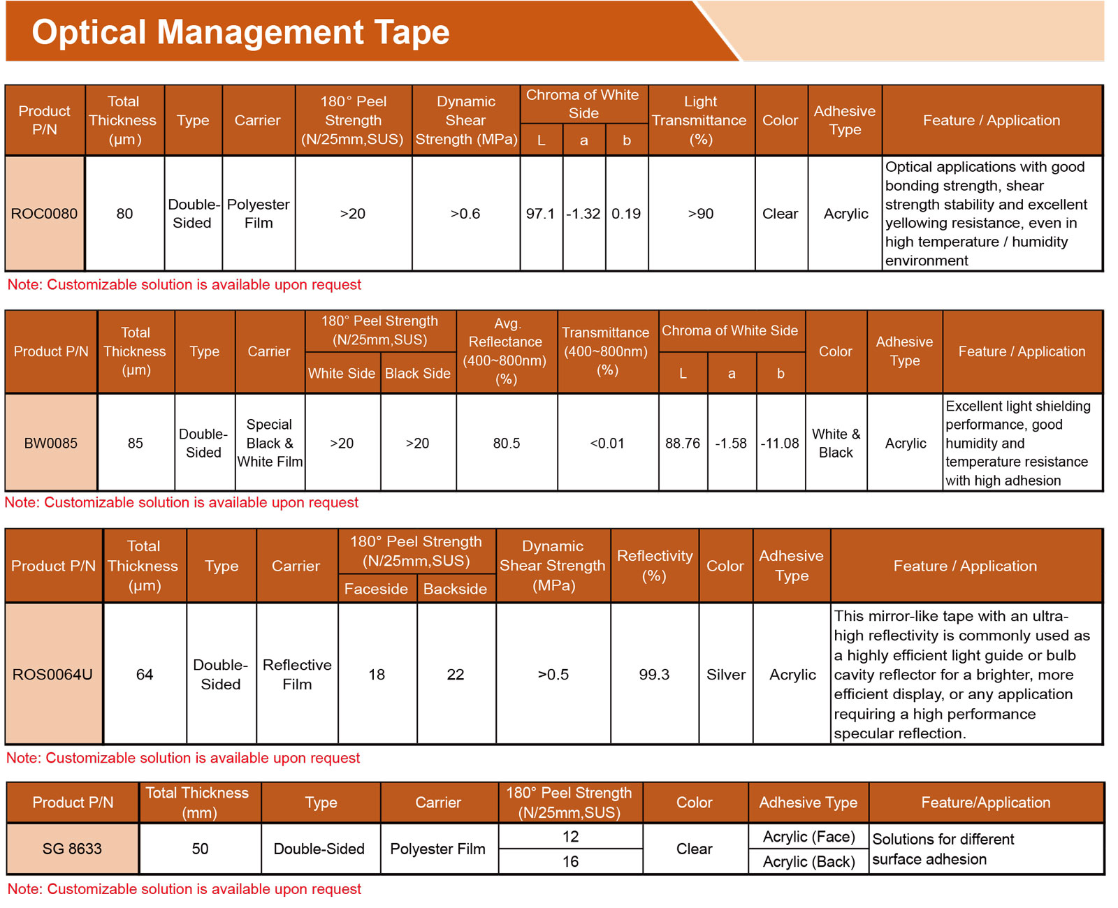 首頁 > 產品 > 膠帶材料 > 膠帶 > 光學膠帶